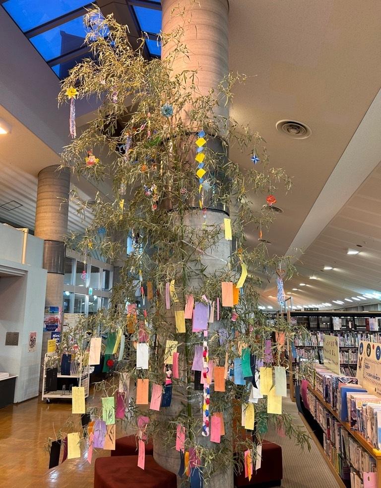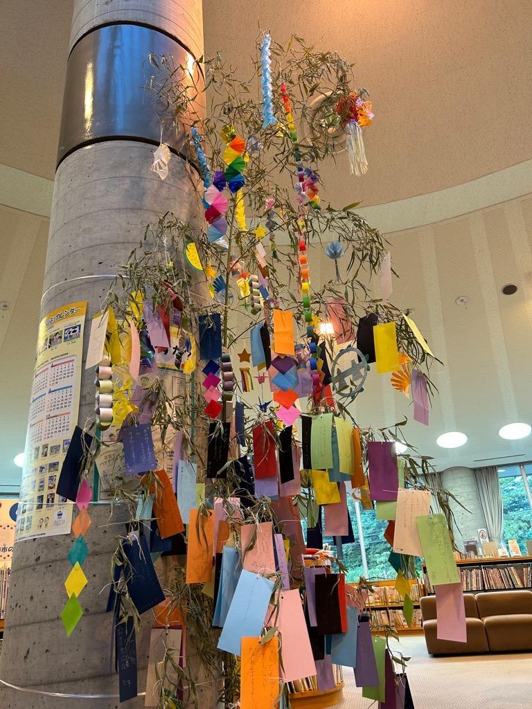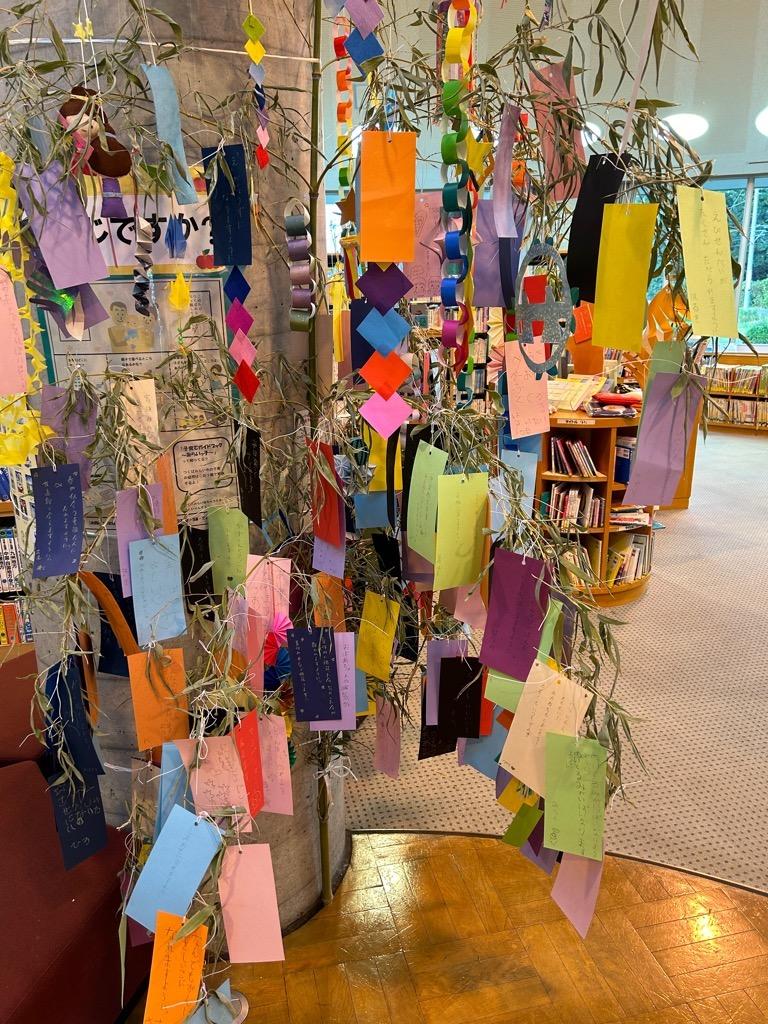 みらい図書館supported by 成島建設(図書館 本館)にて6月27日(木曜日)から行っていた七夕イベントでは、七夕用の竹を展示し、来館した皆様にたくさんの短冊をかいて飾っていただきました。