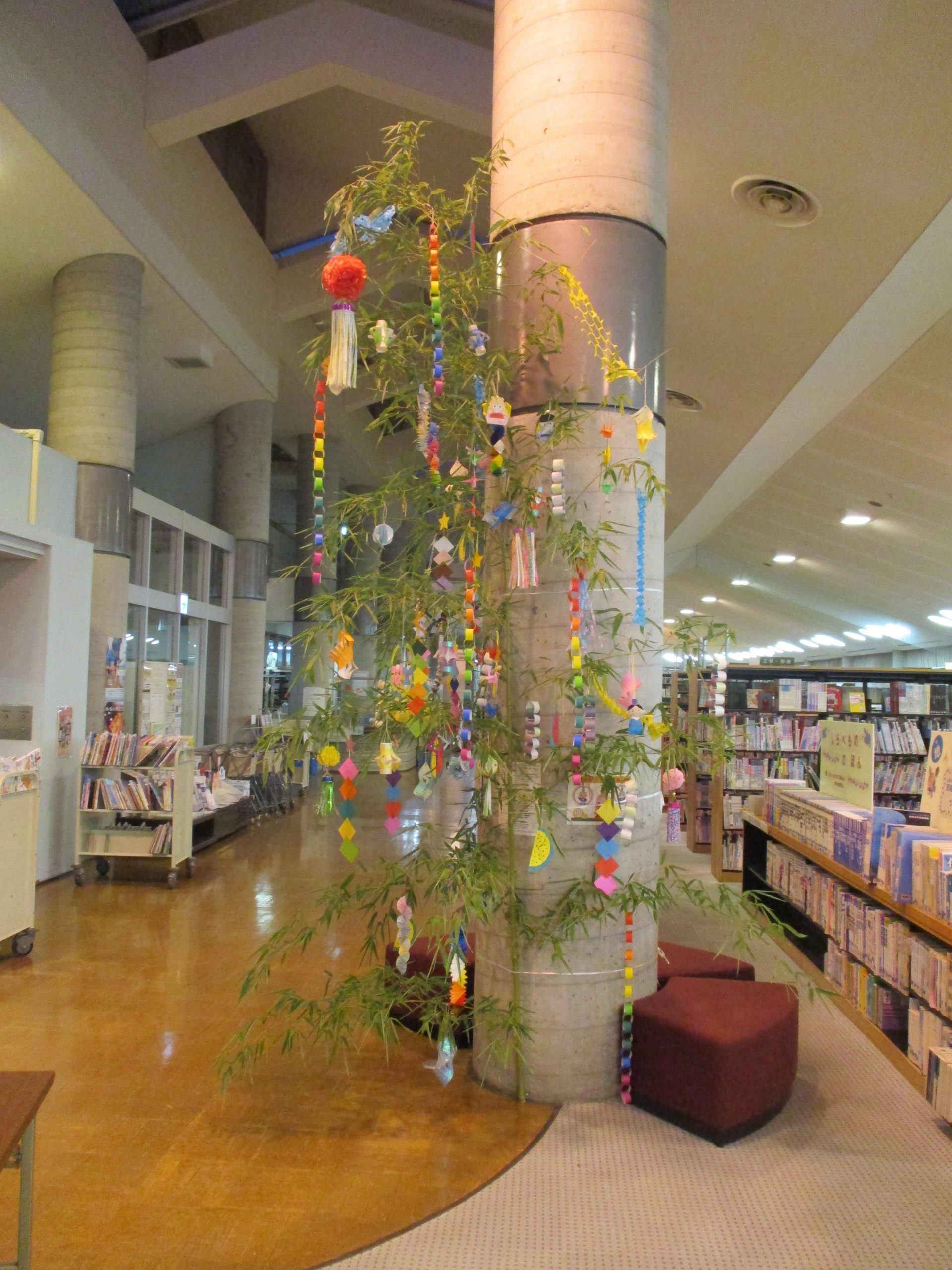 6月27日(木曜日)より、みらい図書館supported by 成島建設(図書館 本館)の児童コーナーで七夕用の竹を飾っています。
