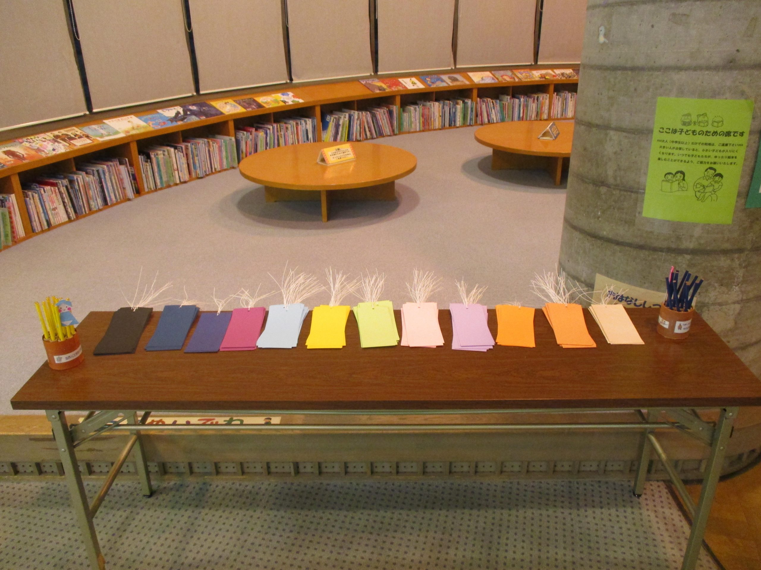 今年は黒と黄色の2色のえんぴつと、様々な色の短冊を用意しています。